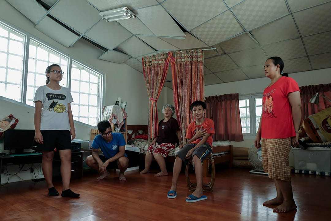 美枝有四個小孩,都在外地就業,當餐廳工作空擋,她會搭車到各地去探望小孩。颱風當晚,子女們打電話來詢問狀況,確認彼此都安好後,能做的只是靜靜的等待颱風過去。
