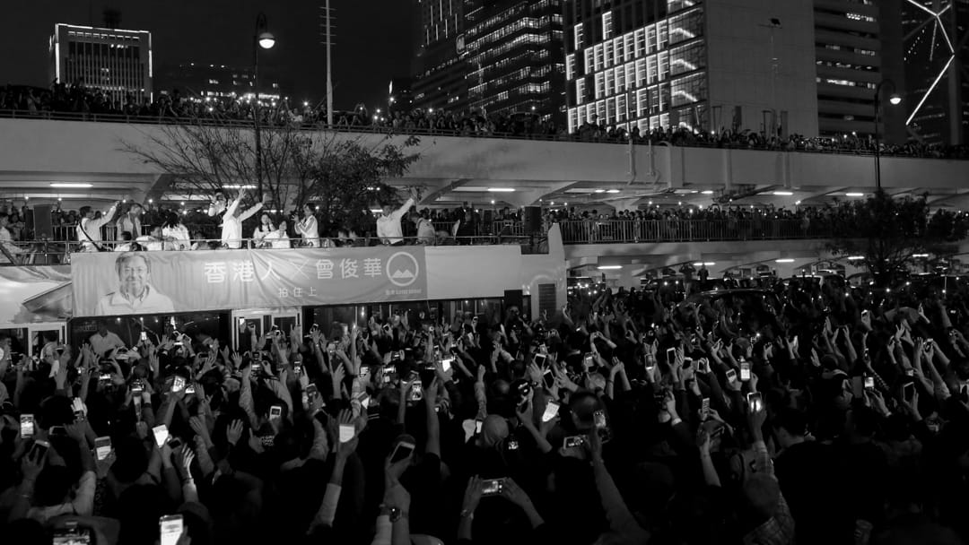 最後,曾俊華與在場市民自拍,一眾市民高舉食指,寓意支持參選編號為1號的曾俊華,又亮起手機燈光,形成一遍燈海。