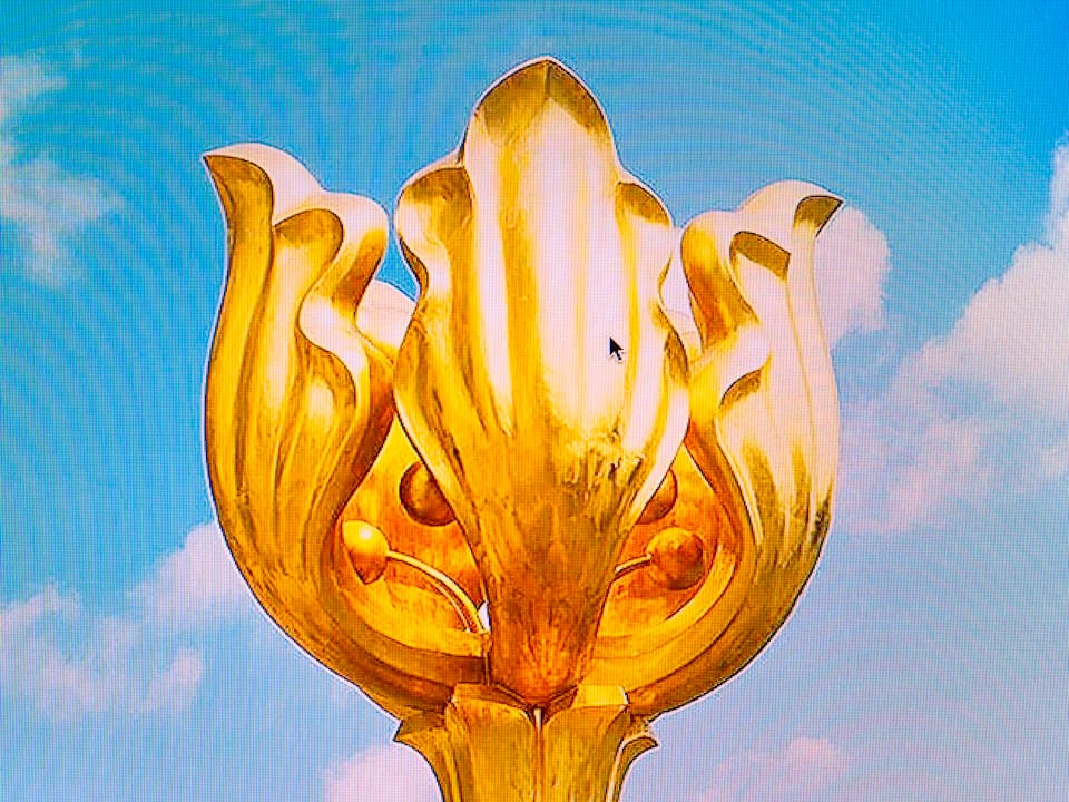 印在酒樓背景上的金紫荊、印在紀念品上給旅客帶回家的金紫荊、 在地圖上的特意標示的金紫荊,這都是印證著香港繁華興盛的最好證據。站在金紫荊廣場上拍照的旅人,他們像在打獵後跟獵物合照的模樣,再把照片刷印出來,跟親友分享這喜悅。