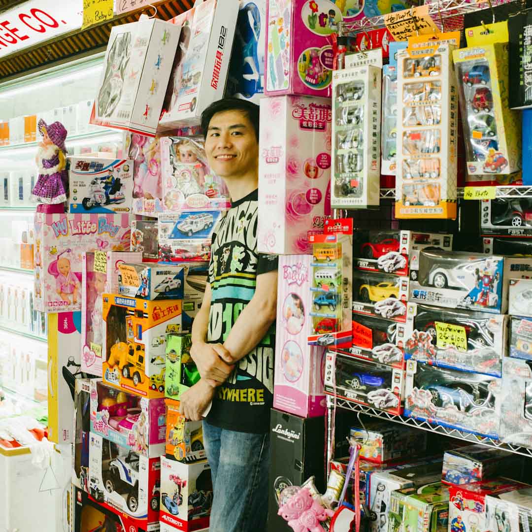 三樓的玩具店的主人 Raymond 是環球大廈少見的土生土長香港人。9年前,他因店租便宜而進入環球大廈,自學菲律賓語,起初賣過衣服,但因競爭太大而轉型賣玩具。環球大廈只有三間玩具鋪,針對要寄東西給孩子的菲傭,售賣便宜的洋娃娃、機器人、模型車、模型手槍,一個菲律賓版芭比娃娃的售價在100元以下。