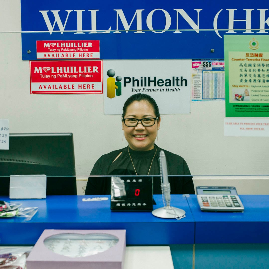 二樓的 Wilmon HK Ltd 是一間匯錢店,1998年開業,店主夫婦是一對祖籍福建的菲律賓華僑。店長菲律賓人 Maribel 從2004年開始跟隨店主夫婦來到環球大廈,一直工作至今,從銷售員做到主管,兩個兒子如今都就讀香港名校,粵語比她好。繁忙的星期天,她一天需要接待400-500個菲傭給家鄉匯錢,匯款一小時內就能到賬。