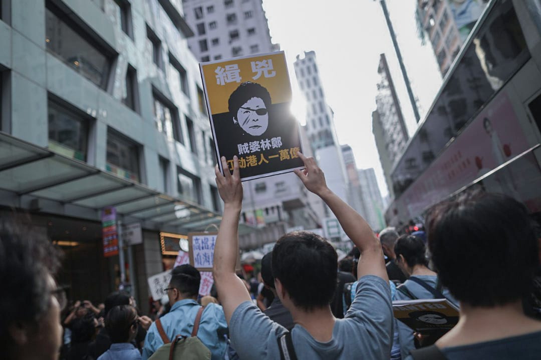 人声鼎沸,缤纷的泡泡随风飘向商业大楼。不到半腰高的孩子们,举著各式各样的纸牌,脸上画著东大屿山和海豚的图案,和父母一齐整装待发。一向是游客和商业中心的铜锣湾,被游行的人潮划出了一片“红海”。