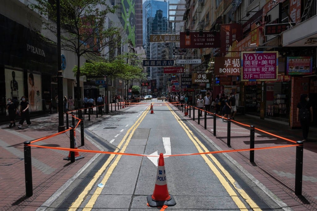 在國安法和疫情之下,橙帶成為過去一兩年香港警方常用的工具,在街頭不同地方可隨意劃出封鎖區,喝令記者和市民不得進入。今日,警方同樣以橙帶圍封銅鑼灣崇光百貨附近的行人專用區記利佐治街,不時截查途經市民。