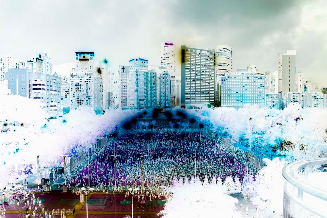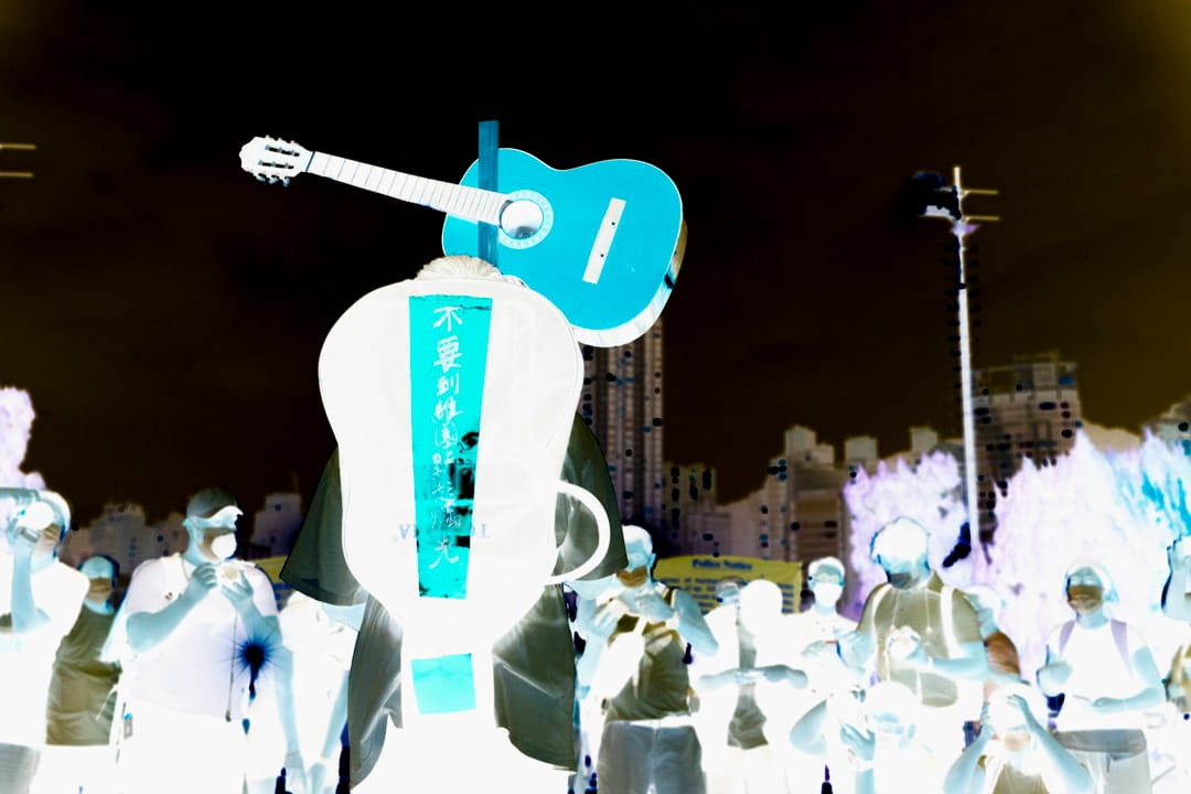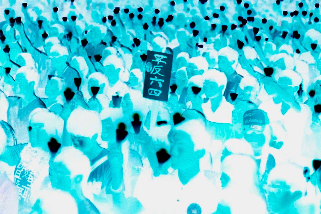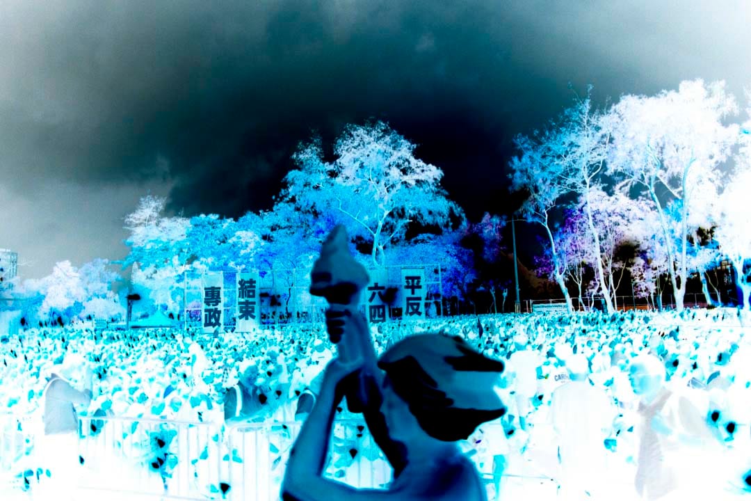 我以多年來的六四維園燭光晚會的照片,以負片效果作為呈現方式,以迂迴的路徑來觀看多年來的香港六四記憶,負片中的一切,那人群、那燭光、那橫幅、那雕塑,都曾經存在過。