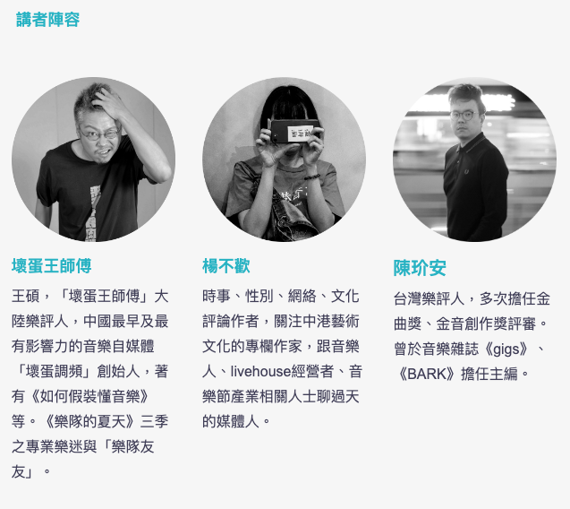 中港臺三地樂評人齊聚,以節目為解讀文本,從各自所在文化脈絡出發,以不同地域視角,聊聊關於搖滾樂 vs 中國 vs 當下的方方面面。