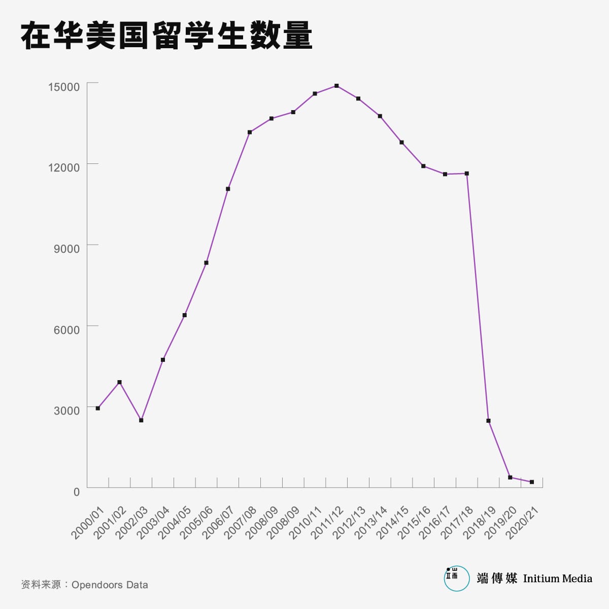 2021/22学年,共有211名美国学生在中国留学生活。五年前,这个数字是11,639,规模缩减了超过五十倍。