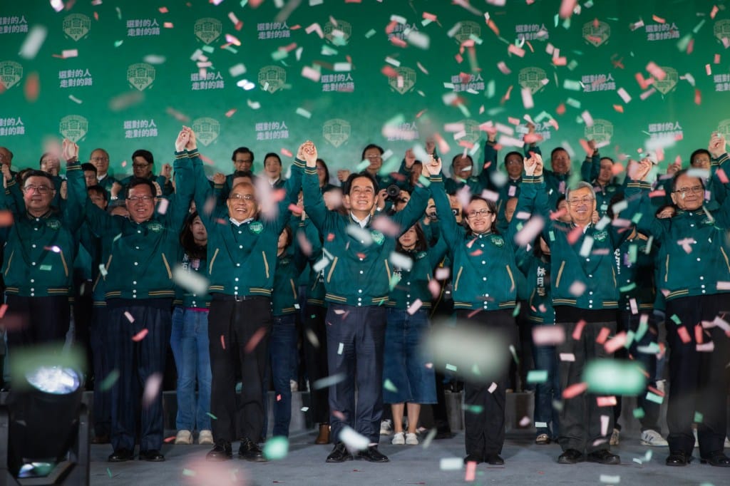 2024年1月13日,台湾大选开票,赖清德竞选总部开票现场。摄:陈焯煇/端传媒