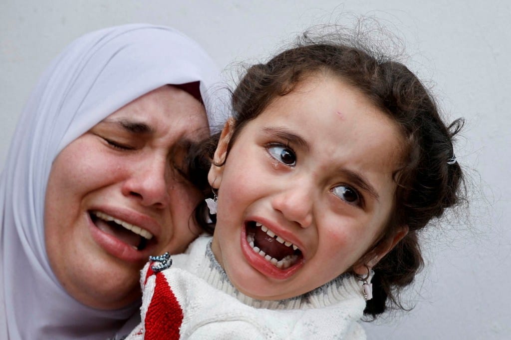 2024年4月15日,以色列占领的约旦河西岸纳布卢斯附近的萨利姆,在巴勒斯坦人Yazan Ishtayeh 的葬礼上,哀悼者情绪激动悲伤。摄:Raneen Sawafta/Reuters/达志影像