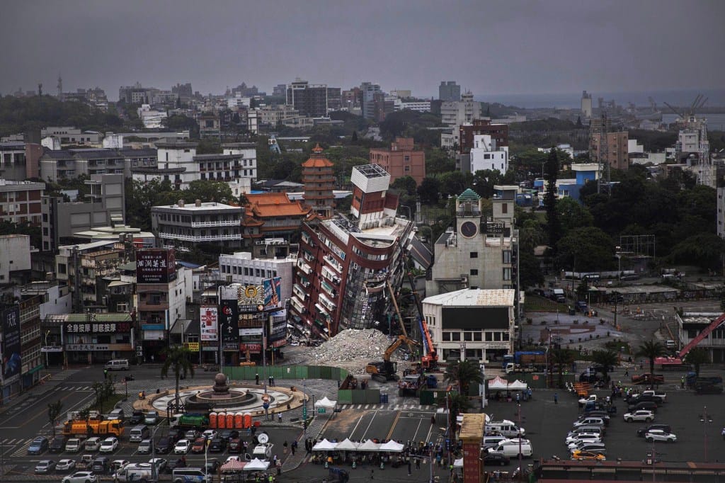 2024年4月5日,台湾花莲县发生芮氏规模7.2强震,全台震感强烈。此次地震为1999年九二一大地震以来台湾遭遇的最强地震,花莲一幢因地震而倒塌的天王星大楼。摄:陈焯煇/端传媒