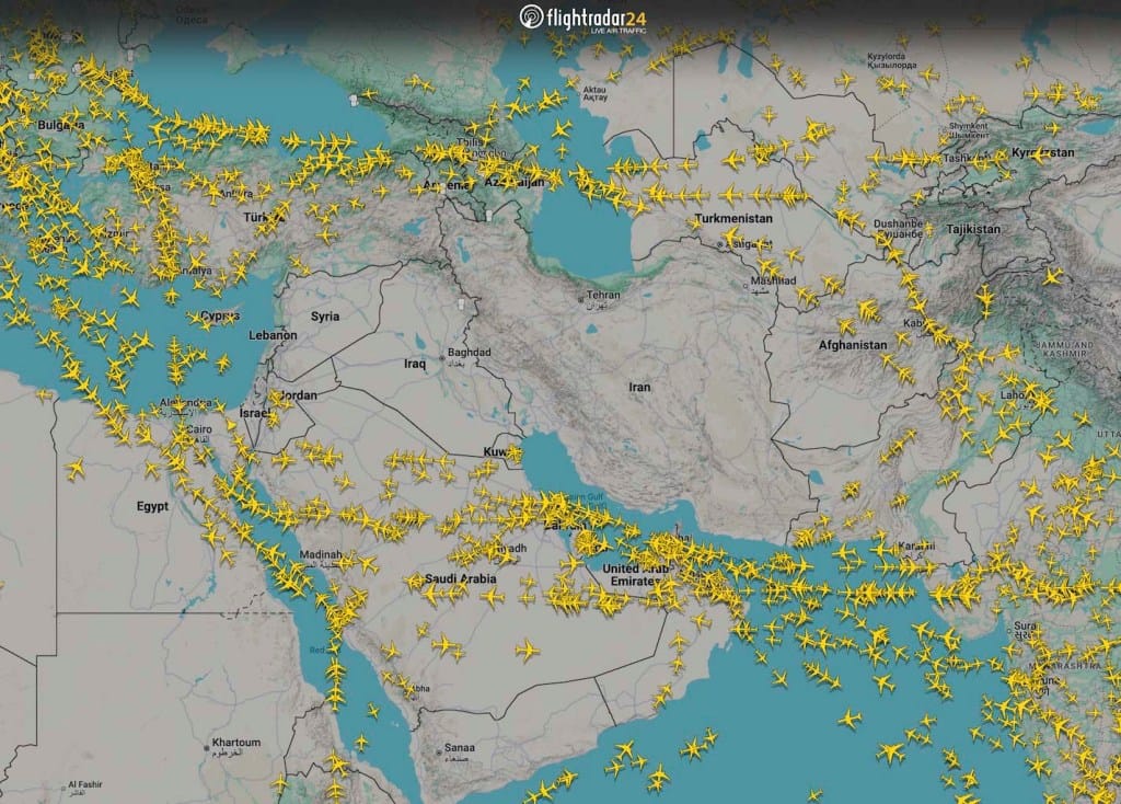 空域关闭迫使航空公司改道飞行。根据Flightradar24数据,中东冲突爆发后一周,飞越沙乌地阿拉伯的航班数量增加一倍,飞越阿富汗的航班数量则激增近五倍,已接近负荷上限。6月14日,喀布尔飞航情报区(FIR Kabul)发布一则NOTAM(飞航通告,Notice to Air Missions),通知计划飞越阿富汗的航班,可能因飞机安全间距需求,在进入空域前被要求在航路上等候。