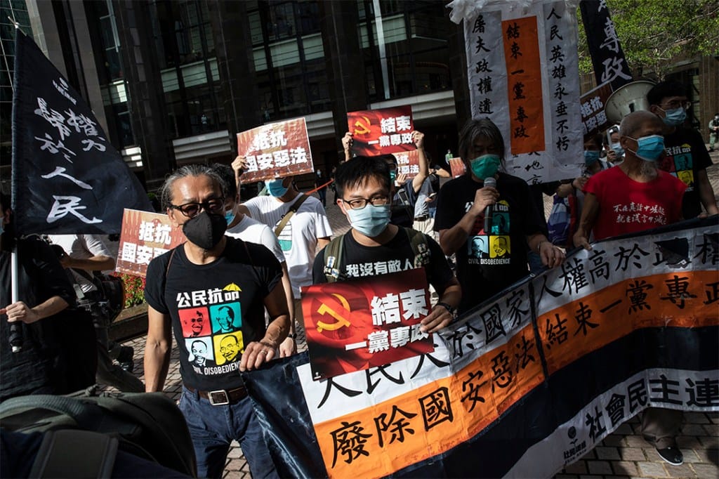 “宁化飞灰,不作浮尘”、“没有抗争,哪有改变”、“济弱扶倾,义无反顾”。在6月29日,港区国安法实施五周年之际,香港社会民主连线最后一次公开高呼抗议口号。