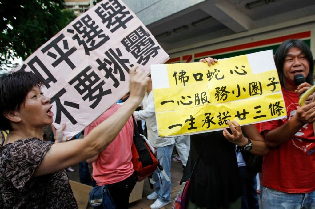 在亲中的政客和传媒眼中,掷物示威的社民连已然成为“反中乱港”的破坏者。但更令北京不安的是,社民连在2009年就“2012年特首和立法会产生办法”牵头发起的“五区请辞,变相公投”运动,背后是民主运动破格的激进化,以及民主阵营的一次路线分歧。