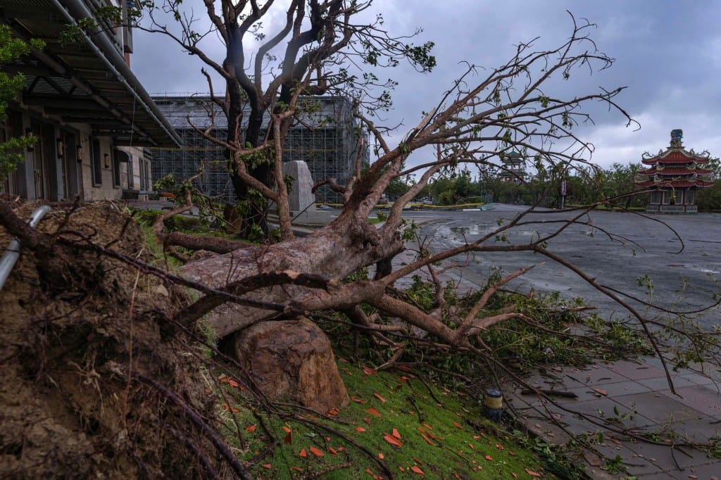 2025年7月7日,台南,台风后,南鲲鯓代天府旁的公园。摄:陈焯煇/端传媒