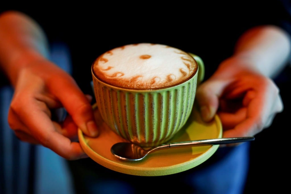 我點了一杯卡布奇諾,只見Sophia熟練地操作咖啡機手柄填粉、壓實。啓動咖啡萃取之後,她動作俐落地取來奶缸,打開蒸汽棒排汽。蒸汽棒釋出的熱空氣攪拌著牛奶,發出細碎的嘖嘖聲。。她留心注視着奶泡的狀態,適時取出蒸汽棒、擦拭乾淨,再用奶缸輕敲桌面,微微搖晃小臂,將綿密奶泡和熱牛奶倒入盛有濃縮咖啡的杯中。一套動作如行雲流水,一分鐘內就做出一杯香濃的卡布奇諾。