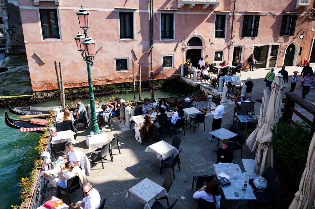 每到日落時分,Bar Foscarini門前的景象,宛如莫奈畫筆下的威尼斯。大運河的水波泛着金光,路過的船隻和河兩岸的巴洛克與哥特建築,都被染成了淡粉色,遊人紛紛拍照留念。Bar Foscarini如今的客源大多是遊客,只有大概一成的本地顧客。