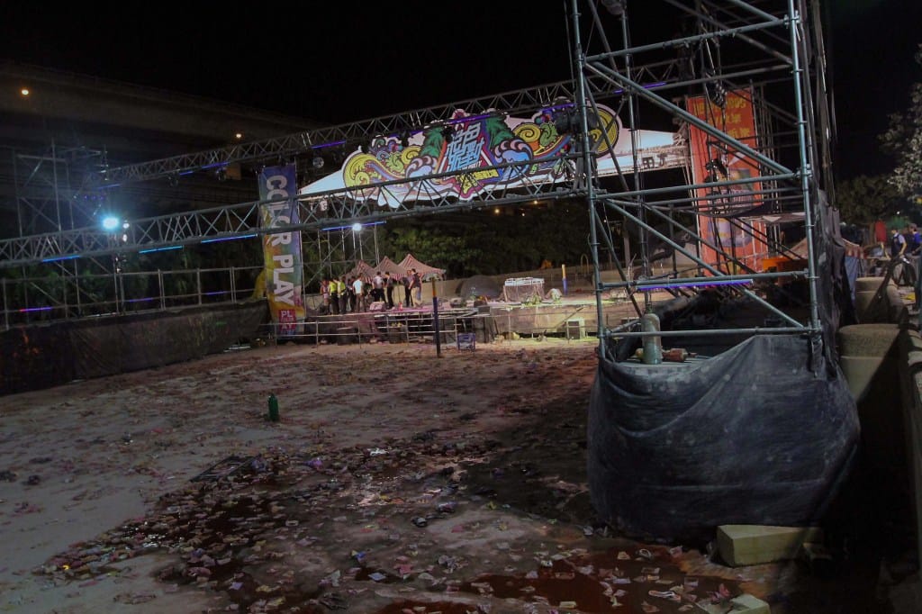 那晚,地處八仙樂園最深處的「歡樂大堡礁」,被一聲聲重低音持續敲響,數百名年輕的軀體隨著音浪忘我的擺盪身軀,那是一處被抽乾水的戲水區,被活動業者租借來舉辦彩色粉塵派對——那源自印度「彩色節」,現場煙霧繚繞,視野所及盡是一片繽紛的夢幻景象。配合著派對電音的節拍,水池成了派對舞池,青年男女沈浸在如夢的煙霧中,掉入狂歡的迷幻世界。