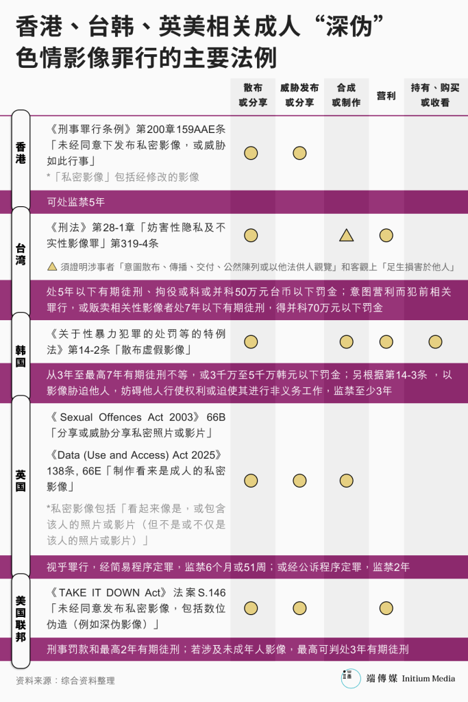 另一方面,英国在上月将制作深伪色情刑事化,而散布和威胁散布的行为已于2023年刑事化。