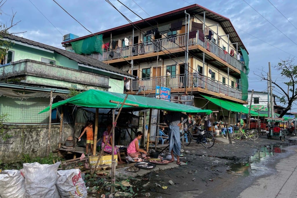雨季的仰光,只需一日暴雨,半個萊達亞都會泡在積水裏。這些水漆黑如鏡面,漂浮着五顏六色的垃圾,圍繞着自建房宿舍和棚屋。這裏被認為是仰光市最大的產業區,租戶們大多是外來務工人員。《緬甸勞工新聞》7月1日的一篇報道稱,整個2025年上半年,產業園區房租都在持續上漲。其中,6月的租房成本幾乎翻了一倍。