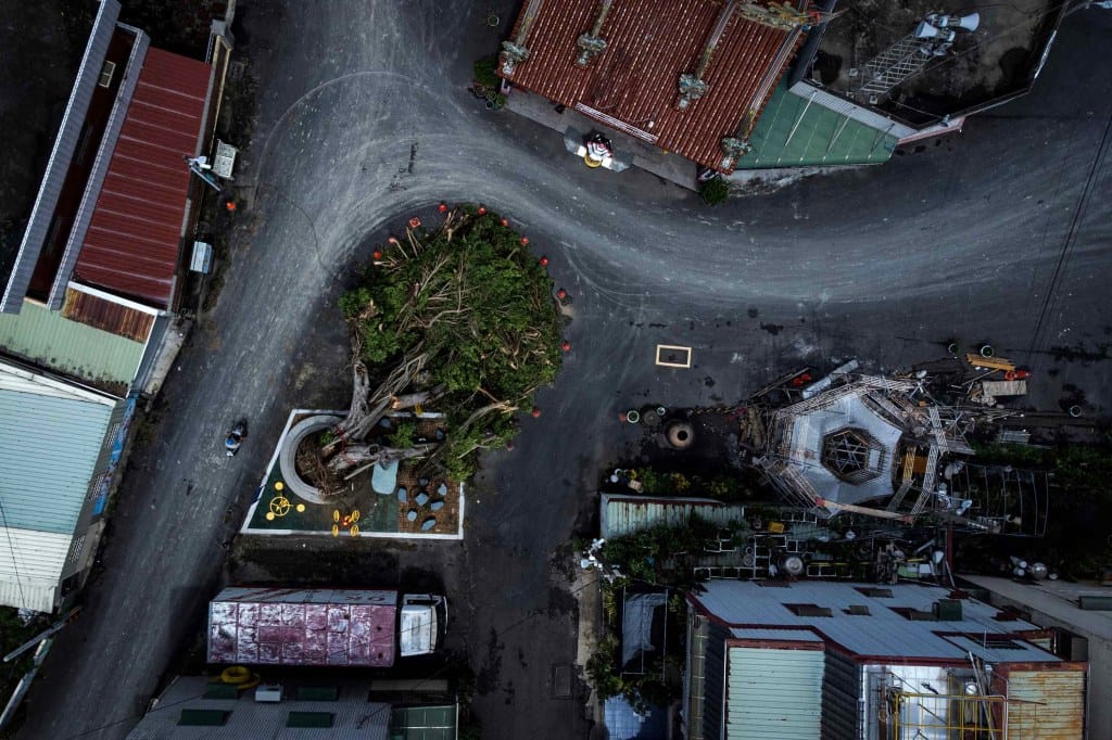 2024年7月27日,嘉义水上乡,台风期间仁安宫前的一棵老榕树倒下。摄:陈焯煇/端传媒