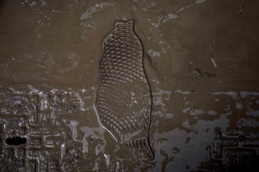 2024年7月27日,嘉义水上乡,淹水过后地上沾满泥泞,布满弃置的家具。摄:陈焯煇/端传媒