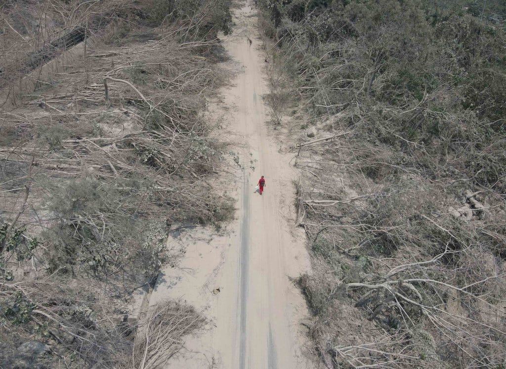 2024年4月4日,台灣花蓮,一名男子走在地震後因山崩受損而被麈土覆蓋的道路上。攝:趙世勳/中央通訊社【自然環境與科技類 優選】林彥廷/報導者
