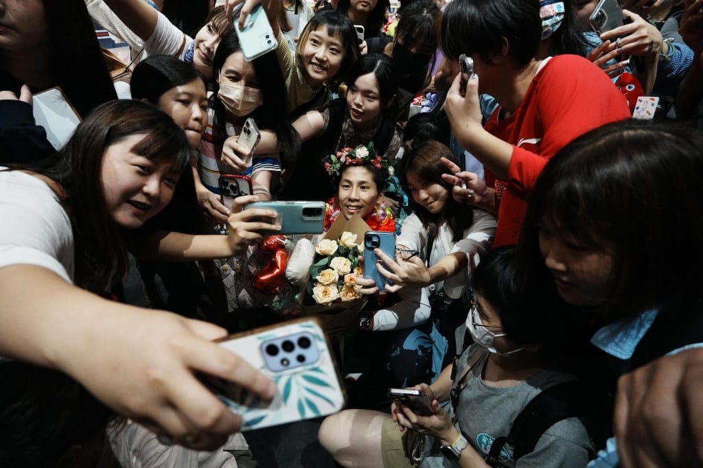 「台灣的女兒」林郁婷在巴黎奧運拳擊項目奪金後光榮返台,許多支持民眾到桃園機場接機,林郁婷在群眾的簇擁下和大家一起開心自拍。攝:陳卓邦/知新聞【自然環境與科技類 冠軍】趙世勳/中央通訊社