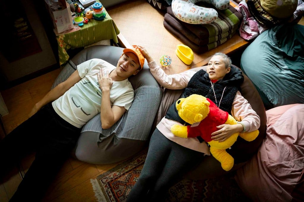 在美國實境節目《魯保羅變裝秀》奪冠的妮妃雅,和曹媽媽躺著拍照,意外捕捉到母子的溫馨時刻。攝:王漢順/鏡週刊【肖像類 優選】陳焯煇/端傳媒