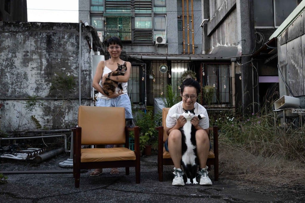 台北市信義區的頂樓加蓋住戶和兩隻貓。攝影:蔡昕翰