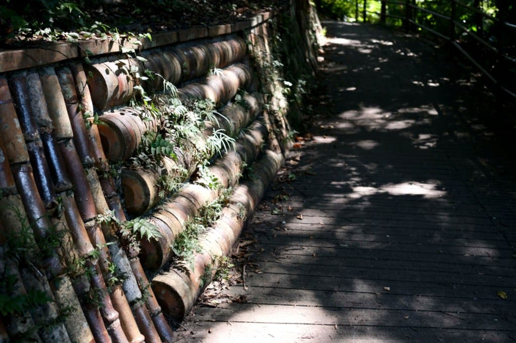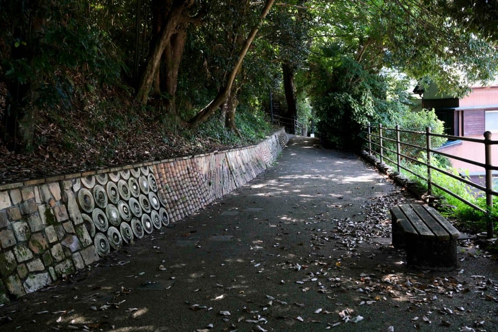 我們沿著窯垣小徑走回停車場,這修小路原是運送陶瓷的路徑,以登窯用的燒陶工具拼成的圍牆、護土牆,在日本極為罕見。本地人曾經把那些燒陶工具視為垃圾,把小徑喚作「窯糞小徑」。直到民藝運動時,柳宗悅及濱田庄司到來,對之讚頌不已,於瀬戶一個叫本業窯的民窯的推動下,政府官員才有點明白它的價值。那天陽光穿過林木,幾團光暈落在護土牆上,花草仍未長盛,顯得草叢裡用來防雜草生長的塑膠網尤其礙眼。金森跟我說著他與瀬戶的淵源,這個千年的陶鄉曾是他上大學的必經之地,幾乎每天往返,他卻從不知道窯垣小徑的存在。「如此獨特的風景,該好好維護的。」金森語重深長地說著,撿起了草叢裡一些塑膠垃圾,塞進他隨身攜帶的垃圾袋裡。