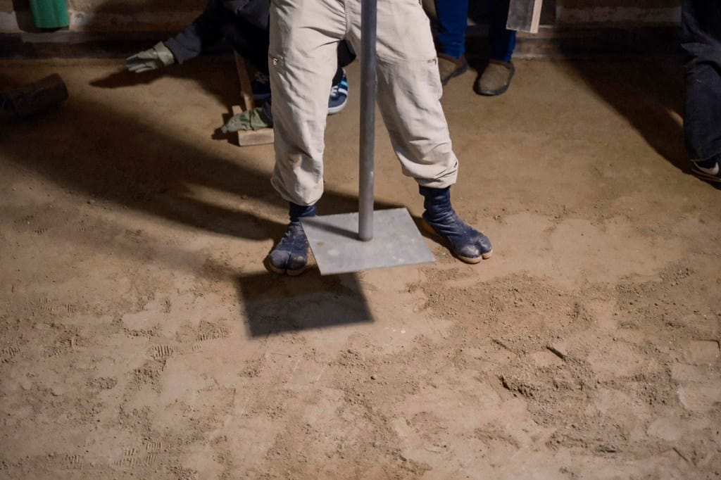 這天做三和土地板,是我們最後一個工作坊了,今天晚上,金森為了趕在翌日三和土變硬前作最後的潤飾,大概會在老房子內留宿吧。工程展開後,他與這房子幾近血脈相連。造土牆時,幾個低於攝氏零度的晚上,因擔心土牆內的水份會化作冰,令土牆裂開,他鑽進睡袋,徹夜守在如同室外的工地裡,點起火爐,為土牆保溫。他與房子的感情,是熬出來的。
