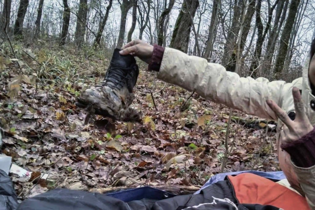 他們當中的大部分人購買了蛇頭的服務,但「taxi game」遠遠不如想象中的舒適順利,一輛普通的兩廂轎車裏,塞下了10個人,小德和另一人蜷縮在後備箱裏。深夜,他們依然要在天寒地凍的山林裏徒步幾個小時,渡過冰冷刺骨的河水,累得把行李全都丟棄了。因為接應的車輛沒有準時到達,他們白天不得不躲在樹林當中。一行人又困又乏,凍得瑟瑟發抖,抱在一起取暖。