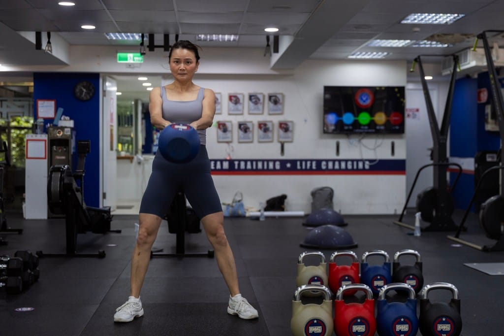 清晨六点,Phoebe起床为全家准备早餐、绑女儿头发、替儿子检查书包,八点前将两个孩子送进校门,才匆匆搭上公车,赶往健身房。46岁的她拉单杠、深蹲、壶铃摆荡,核心出力时汗水凝结在脸上,股四头肌绷紧。