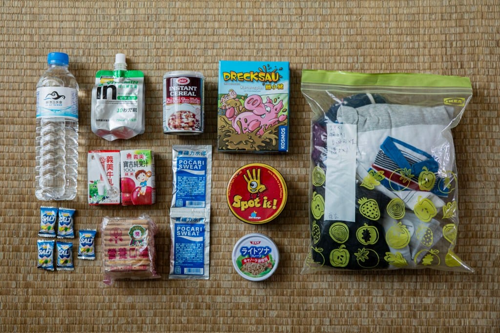 原本她家就有地震避难包,她陆续加入更多元的物资,除了常见的医疗、食物和野外用品,她还放了耳塞(防砲击音波)、桌游(安抚孩子转移注意力)、月亮裤(经期所需的特殊材质内裤)等等。