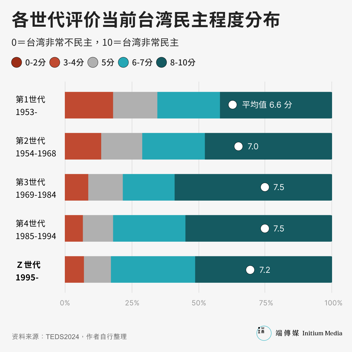 Z世代如何看待当年台湾的民主程度?TEDS2024有这么一题: