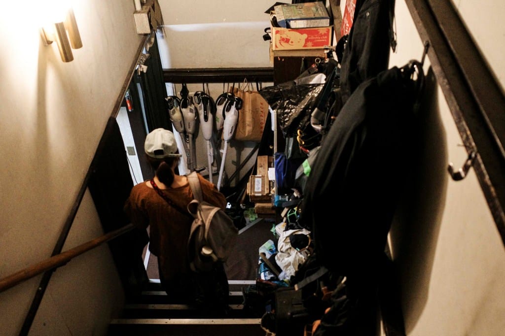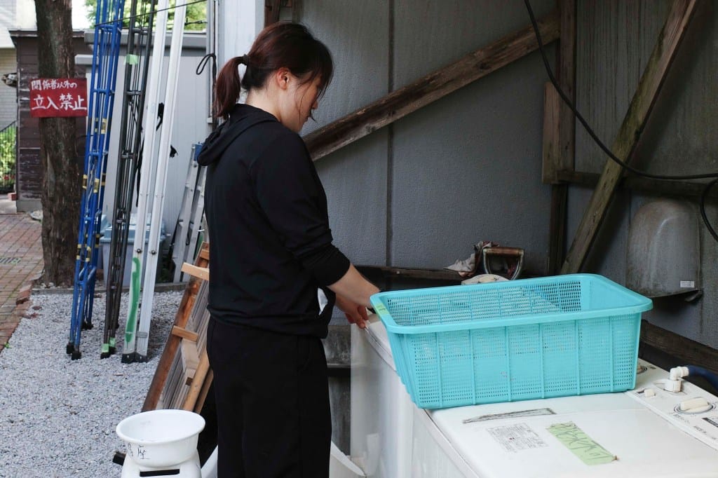 這天劇場公演後,演員與觀眾聚在正門前方,各自圍着聊天。一身全黑裝扮的Indi,正在後院來回幹活。劇團分演技部與幕後部,前者為演出人員,後者則包括燈光、音響、舞台監督、美術設計、服裝等,由劇團成員輪流分配每場公演的崗位。像這次,Indi則被派到服裝部,負責在演出期間幫演員快速換裝,縫補衣服,還有洗衣服。她捧着一籃又一籃戲服,到場外的洗衣場,間中有人經過,連忙點頭互道一句辛苦了。