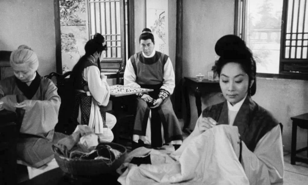 然而,董夫人在唐書璇的電影裡,也絕非是一位處於被動地位等待著貞節牌坊的傳統溫良恭儉讓女性,即使故事的結局看似如此,但電影鏡頭拒絕停留於故事表層。影片中有一段極為精彩的影像蒙太奇,唐書璇以巧妙的剪接手法——定格、抽格、記憶閃回、快節奏的剪接,呈現董夫人面對慾望與禁忌之間那百轉千迴的思緒變化,這些是人物內在狀態未言明的抽象心境,在那保守的社會氛圍下,喪夫的女性不被允許的情感,在唐書璇的電影語言中,得以獲得自由解放的空間。