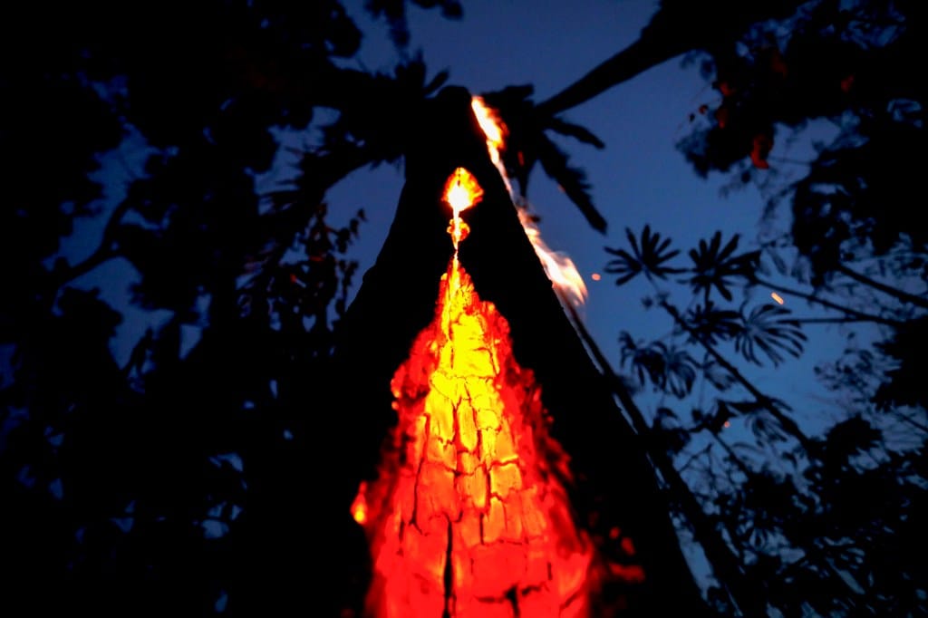 Evans 指出这些动物就是雨林中的“非人类难民”。它们和人类气候难民一样,被迫离开家园,在陌生的环境里挣扎求生。这并非自然宿命,而是全球资本主义驱动的结果。牧牛业与大豆种植满足的正是全球北方的肉类消费与饲料需求;纵火清林、森林砍伐、土地掠夺,都是这条供应链上的一环。与动物共享“难民”命运的,还有大量依赖森林为生的原住民和小农社群。Ta们在火灾后失去耕地、食物和文化根基,被迫迁徙到城市,成为廉价劳工。