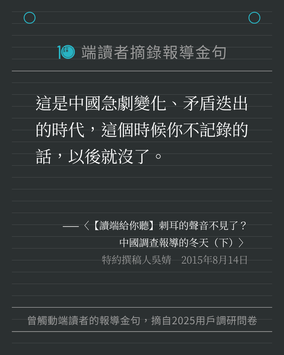 1.【讀端給你聽】刺耳的聲音不見了?中國調查報導的冬天(下)