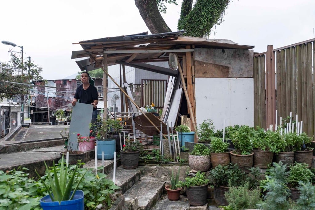 十五年前,郭志云看中茶果岭村租金相对便宜,从观塘搬进村内。进村不久,他便开始种植物,作为精神寄托。他主要打理茶果岭村已有的植物,有时亦会带新种子回来种植。