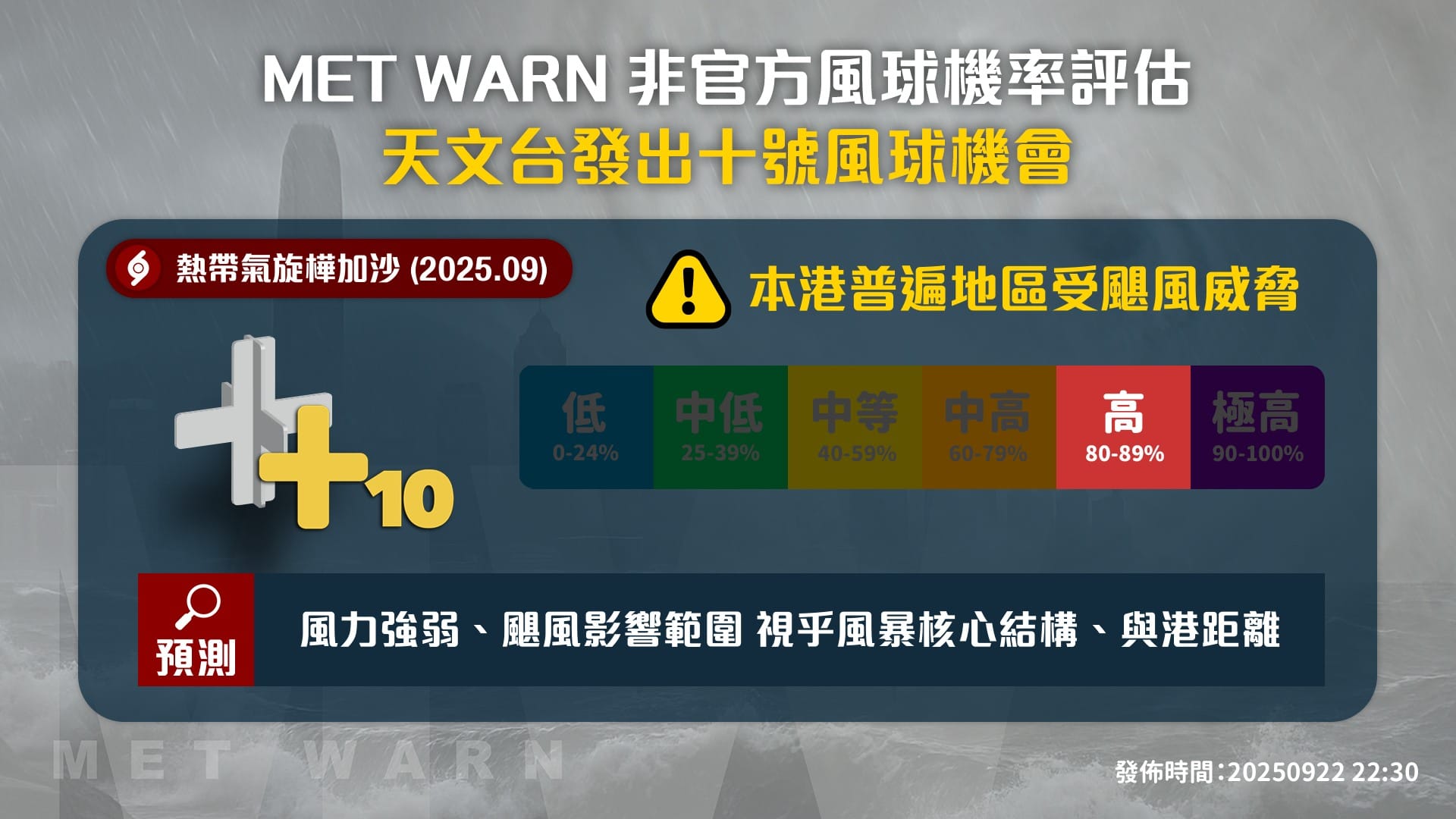 9月22日當晚,MET WARN 進行了一小時的風暴直播,觀看次數達11萬。節目鋪排如電視台新聞報導:以片頭和配樂導入、主播東岳字正腔圓唸讀資訊,配合風暴圖、自製圖表和字幕走馬燈。鏡頭一轉,切換到維港和九龍灣等的現場情況。