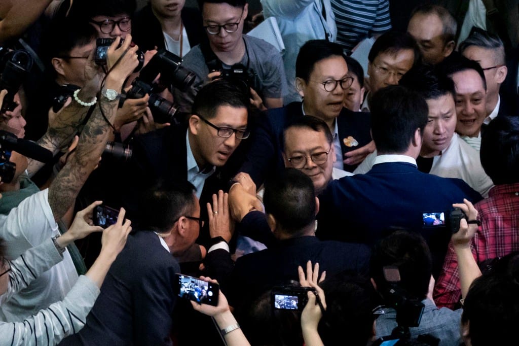 林卓廷被控两项“袭击、妨碍或骚扰在会议厅范围内的议员罪”,他否认两项控罪。
