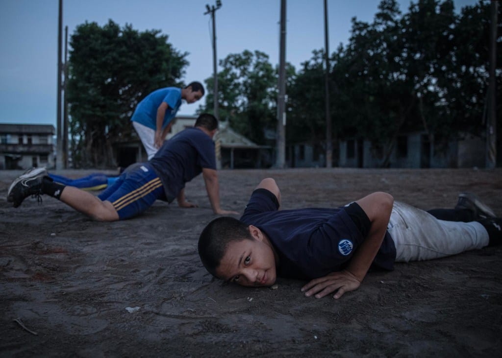 2025年10月7日,花蓮光復鄉,一隊球隊在災後的球場上訓練。攝:陳焯煇/端傳媒