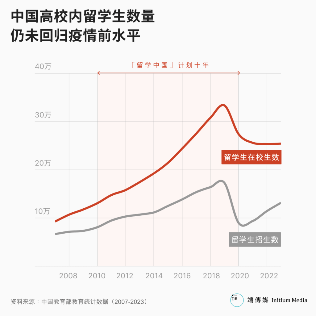 不过在过去的五年,疫情减少了在华留学生总量。 2020年,中国高等教育在校留学生总数已从2018年的307,501人下降约17.4%,至25,4019人。