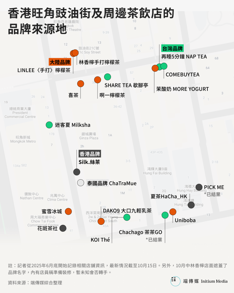 處於香港旺角鬧市當中最繁忙的豉油街——短短100米內,5間大陸茶飲品牌逆市開張。