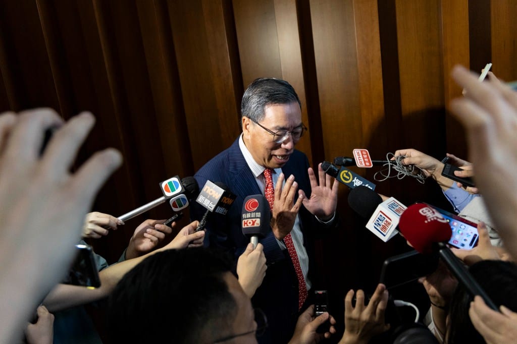 2025年10月15日,立法會會議,主席梁君彥步出議事廳後被傳媒追訪,指自己74歲,覺得是時間不做,「長江後浪推前浪,全社會都準備讓年輕人接班」。攝:鄧家烜/端傳媒