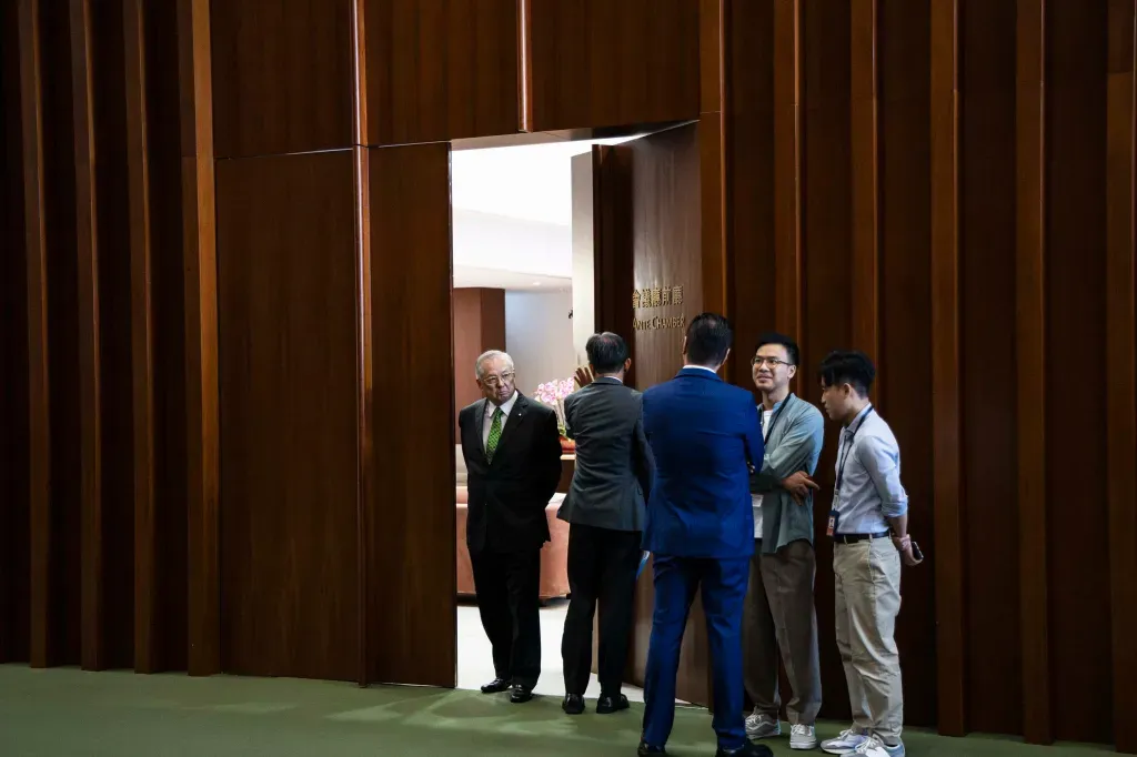 2025年10月15日,立法會會議,新民黨創黨主席葉劉淑儀與黨員陳家珮全日從側門進出會議廳。攝:鄧家烜/端傳媒