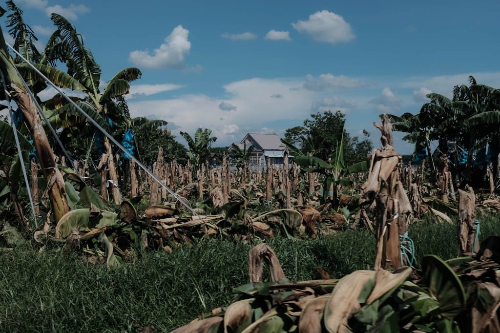 正值雨季,雨像是安排好的,准时让香蕉树在表面上精神了起来。但土壤里的虫子和病菌也跃跃欲试地制造麻烦,爬上果皮留下斑点。雨季助长了这一切,同时阻碍人类的干预——清洗果实、拔除花蕊,这些美容般的工序常常被一场突如其来的大雨摧毁。