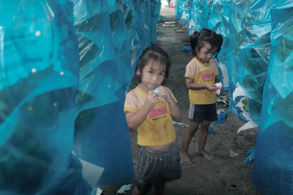 公安以慰问的名义来到农场,转头把车开到打包厂,拍摄在厂里工作的孩子们。12岁、13、14岁的孩子,在家长请求下进入厂里做贴标签、推纸箱等简单工作,否则无事可做,容易学坏。上学从来不在他们的选择范围内。这被管理者看作是对工人的怜悯,却触碰法律边界,也牵扯出中国人的问题。有经验的人告诉我,看到公安,中国人最好躲进香蕉园里——多数人没有工作签证。