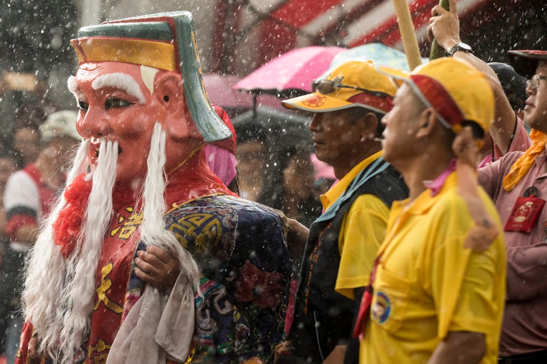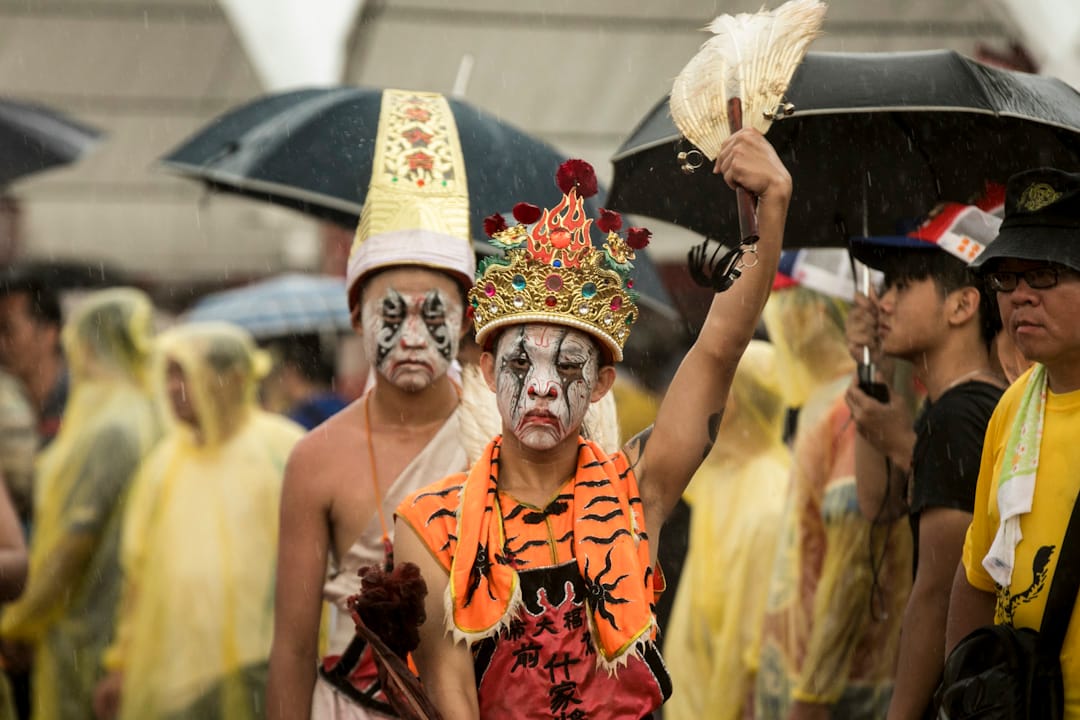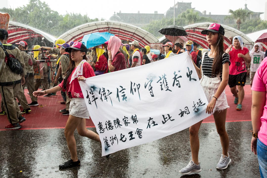 台湾史上第一次“神明上凯道”行动,始于烈日,中途大雨,而后放晴。晴雨之间,是一场前所未见的、“神明”与信众向总统府提出诉求的游行。